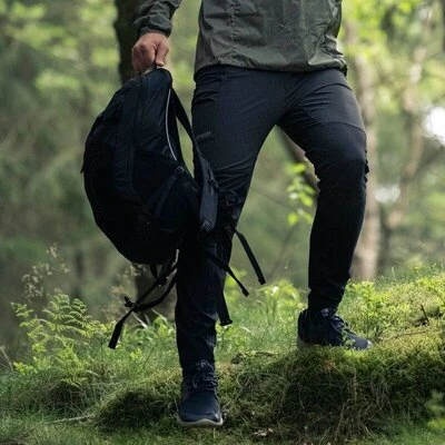 Compression straps on both sides. Adjustable sternum strap. Attachment points for ice axe. Hydration system compatible. Grab handle. Bergans Pole Position; hiking poles attachment allowing you to access or re-attach poles without removing your backpack. Key hook. YKK zippers. Product contains bluesign® approved fabrics and trimmings.