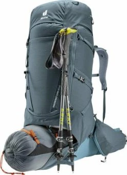 Its superior carry comfort is down to the deuter Aircontact back system with Air Spacer mesh and a large ventilation channel, plus ergonomic ActiveFit shoulder straps and an adjustable sternum strap. The Y-shaped frame, mobile hip fins and ergonomic lumbar pad combine to distribute the load effectively. A full-length, J-shaped zipper on the front makes contents easy to locate lower down in the main compartment. While large, detachable hip fin pockets (3 L) provide extra storage and keep items within reach. A zip-out 1.5-liter bottle holster also lets you hydrate on the move.