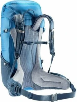- This new mesh back system unites maximum ventilation, ergonomic comfort and lightness. The innovative construction of the hip fin section and the fluid transition to the back mesh enclose the carrier and ensure a comfortable fit. The flexible frame construction made of a permanently elastic and break-proof spring steel gives the Aircomfort back mesh its stable tension. It creates a reliable ventilation space between the backpack and the back, through which moist air can freely evaporate. With the patented Deuter 3-side ventilation system, the wearer sweats up to 25%* less. The high level of flexibility of the whole construction provides the wearer with freedom of movement.