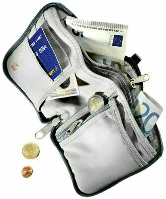 Lightweight outdoor wallet with all-around zipper offers secure storage for money and important papers thanks to its long slip pocket and zippered bill and coin compartments.