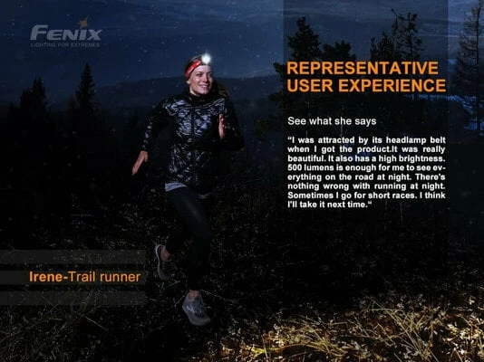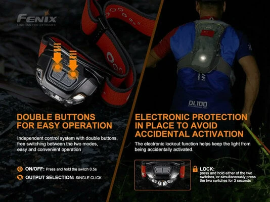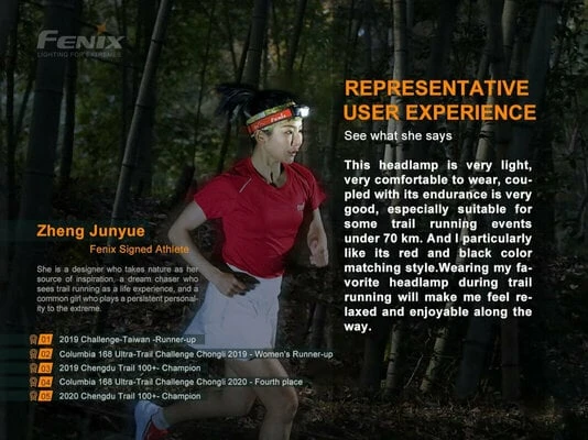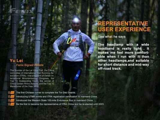 The Fenix HL18R-T is a lightweight trail running headlamp. This attractive running headlamp has two power source options controlled by two independent switches. You can use the included ARB-LP1300 Li-polymer battery pack as your first option. The secondary power options are 3 AAA batteries. Offering two power source options provides peace of mind during the long runs on the dark trails. For added security, the headband of the Fenix HL18R-T is reflective and sweat-channeling. Additionally, you can easily charge the headlamp with the included Micro USB cord. The max output of the Fenix HL18R-T is 500 lumens, with a 20-hour runtime mode for trail running. Get running today with the Fenix HL18R-T.