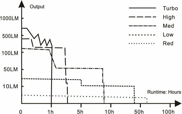*Work normally for 4 hours at 2 meters underwater. According to the ANSI/PLATO FL1 standard, the above specifications are from the results produced by Fenix through its laboratory testing.