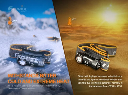 - Fitted with high-performance industrial com ponents, the light could operate (certain func tion fails due to different batteries) normally in temperatures from -35°C to 45°C.
