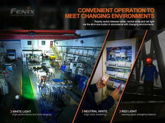 - The job specific white, neutral white and red light flexibly meet all of your different lighting demands.