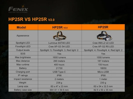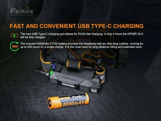 - Included a Fenix ARB-L21-5000 Li-ion battery, compatible with a 18650 Li-ion battery.