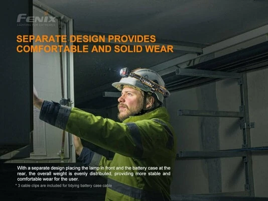 - With a separate design placing the lamp in front and the battery case at the rear, the overall weight is evenly distributed, providing more stable and comfortable wear for the user.