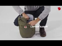 Versatile daypack with zippered opening and padded computer compartment. Fjällräven’s Bergshell fabric is water resistant enough to manage most situations – at the same time as 100 % recycled nylon makes green hearts beat a little faster. Simple to pack and just as suitable for light treks and travelling as for everyday commuting.