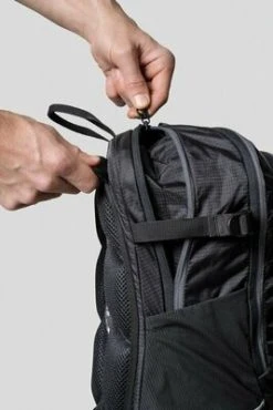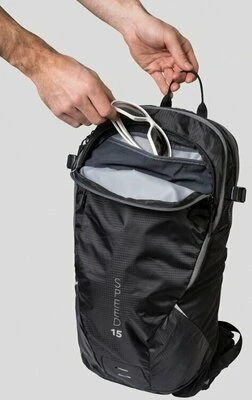 The Speed 15 sports backpack was designed for hiking, cycling and short trips. The Air Vent backpanel is anatomically shaped and provides excellent air circulation, shoulder straps are comfortable, and the backpack fits well thanks to its sternum strap and lightweight hip belt with a pocket. It has a hydration pack sleeve with a drinking hose outlet, a 1 L hydration pack is included. Several pockets (two side pockets, one front zip pocket and one side zip pocket) hold anything you need to have at hand. The backpack also has a LED light attachment point. You can enlarge the backpack with a zip and put your helmet to the front panel.