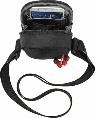 When you’re travelling, stash your wallet and keys in this handy little bag and keep them safe. The padded main compartment has space for your smartphone. You’ll also find a port for your headphones or power bank cable, and a credit card pouch in the stow space divider.