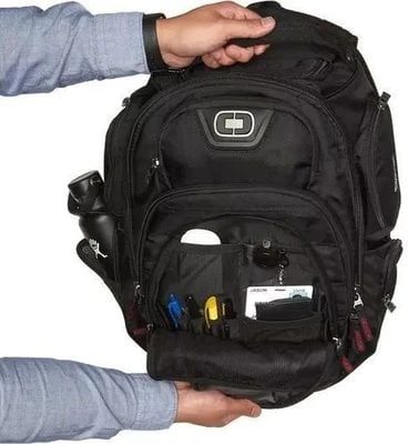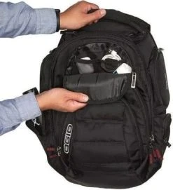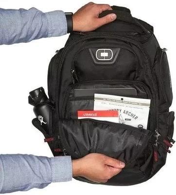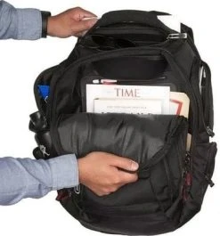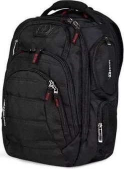 The spacious, modern backpack is designed for laptops and fits most notebooks (17 “). The backpack protects your notebook with a crush-resistant Tech Vault Pocket with Soft Tricot Liner. The increased foam padding on the shoulders makes the backpack comfortable. It has dual side water bottle/ accessory pockets and two zippered side utility pockets.
