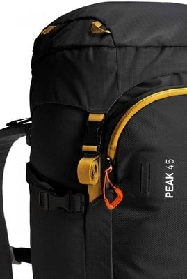 The PEAK 45 backpack is made for alpine tours. This backpack is very robust thanks to the use of the extremely tear and abrasion resistant material Nylon 420D Manstar. The broad, padded shoulder and hip straps distribute the weight of the load evenly between the shoulders and hips, ensuring a high level of wear comfort. A circumferential front zipper enables direct access to the main compartment. The PEAK 45 also scores highly with a separate safety compartment, attachment options for rope, ice axe and crampons, as well as a separate map compartment and a hip pocket. This backpack is also hydration system compatible and includes images of Alpine emergency signals.