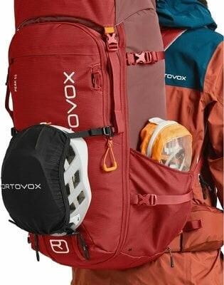 - The wide, padded shoulder and hip straps and the close-fitting, full-contact back reinforced with metal struts of the unique SWISSWOOL 3D BACK SYSTEMS, which distributes the load evenly on the back, ensure high wearing comfort. For optimal climate regulation on the contact surfaces, the back, shoulder and hip straps are lined with a SWISSWOOL wool fleece that reliably absorbs water vapor and dries quickly. The PEAK 55 also scores with a separate safety compartment, numerous attachment options for rope, ice axe, helmet, skis, snowboard and poles, as well as a side crampon compartment. In the spirit of sustainability, the two main outer materials are made of 100 % and 50 % recycled polyamide, which makes the backpack extremely robust, resistant and durable.Â