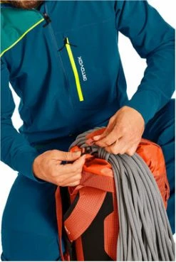 - Despite its minimalism, important details such as material loops, rope fastening options and a fastening for a hydration system are still included. Cushioned shoulder straps and a soft contact back ensure optimum comfort even when carrying angular climbing equipment. The lockable valuables compartment with key clip provides a safe space for important items.