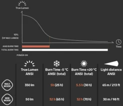 This is an easy to use headlamp; the large on/off button makes it easy to operate the headlamp even when wearing gloves and the battery level indicator informs about the remaining charge level when turned off. Furthermore, Scout 3XT is water resistant according to IPX5 standard. The low weight of the headlamp and the wide anti-slip headband ensure a comfortable fit even during long usage.