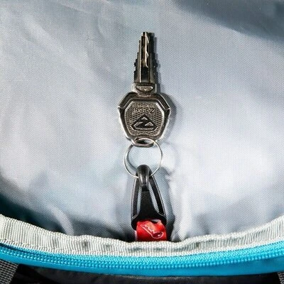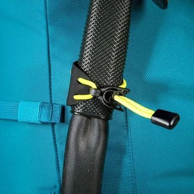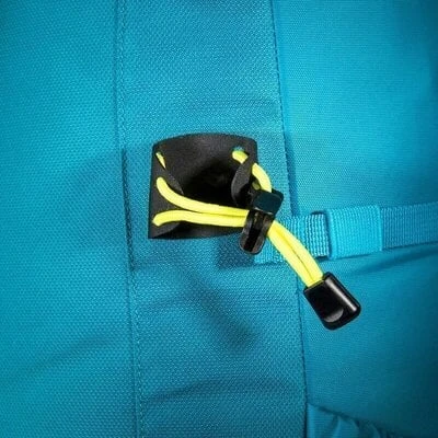 The alpine backpack is equipped with a fixation for a climbing rope, ice axe and hiking stick holder. The lid has material loops and a lid compartment in which mobile phone, wallet and key can be stored. The Thermo Mold Carrying System can be adjusted with a lightweight hip strap and adjustable chest strap, the top compression keeps the backpack contents in position even during intensive movement. The hip belt of the Cima Di Basso can be removed so that the climbing harness can be put on. The bottom of the backpack is made of extremely robust Cordura®.