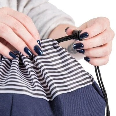 - A top drawstring opening is concealed by a fold-down lid and secured with 2 side-release buckle fastenings