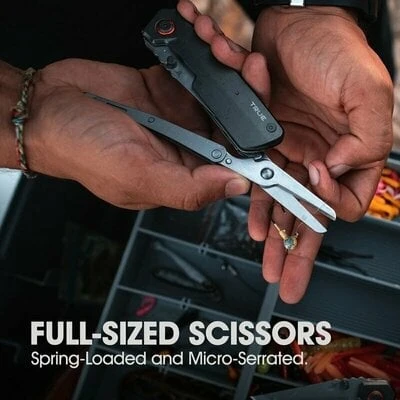 The DUAL CUTTER is a sleek, 2-in-1 cutting tool that houses a 7cm fine edge Tanto blade and a pair of spring-loaded, 4cm micro-serrated scissors. The triangular shape of the Tanto blade provides increased tip strength for piercing tasks and creates two distinct sharpened edges for added functionality. The micro-serrations of the scissors allow for extra grip, which means a stronger edge and steadier, more precise cuts.