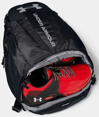 Under Armour Storm technology delivers an element-battling, highly water-resistant finish. Adjustable HeatGear® shoulder straps for extra comfort. Soft-lined laptop sleeve holds up to 15″ MacBook Pro® or similarly sized laptop. Two water-repellent front valuables pockets to keep your stuff safe. Large, gusseted front laundry/shoe pocket placed at bottom of bag. D-Ring on front panel for additional attachment point. Tough, abrasion-resistant bottom panel.