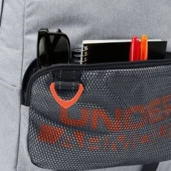 Under Armour Storm technology delivers an element-battling, highly water-resistant finish. Rounded main zip compartment with internal organization pockets. Internal elastic details to hold your cords. External secure, zip pocket. Adjustable webbing straps. Iridescent patch logo.