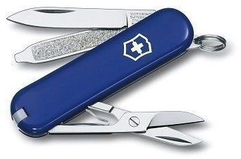 Small Pocket Knife with Scissors and Screwdriver. It all started with the Swiss Officer’s Knife – and more than a century later, the Swiss Army Knife is still an icon of sleek functionality. Each one is built to last a lifetime and in the Classic you’ll find all the functionality you need for your everyday adventures – in a package you’ll want to keep with you always. It’s the easiest lifetime commitment you’ll ever make. Tools: small blade – scissors – nail file – screwdriver 2.5 mm: key ring – toothpick – tweezers. Key features: The compact tool with all the essentials – Swiss made pocket knife with 7 functions – Includes scissors and a nail file with a screwdriver. Item number: 0.6223.2. Height: 9 mm. Length: 58 mm. Weight: 21 g. Color: Blue.