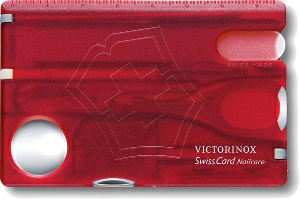 The SwissCard with Glass Nail File. You’ll be amazed at how many tools we’ve packed into the SwissCard. And you’ll be surprised at how often you need one of those tools tucked away inside. With its clever, award-winning design and incredible functionality, you’ll enjoy each time you need to take it out. And now, with help from its glass nail file, the SwissCard helps you stay well-groomed and good to go. Tools: ruler (cm) – ruler (inches) – glass nail file – tweezers – toothpick – pressurized ballpoint pen – pin, stainless steel – scissors – Phillips screwdriver 00/0 – screwdriver 3 mm – screwdriver 5 mm – Phillips screwdriver 1/2 – magnifying glass. Key features: 13 functions – Resistant glass nail file – Light and compact design – Received the Red Dot Award: Product Design 2015. Dimensions: Height 4.5 mm – Length 82 mm – Weight 26 g. Color: Red Transparent